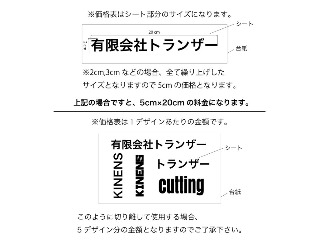 - 1文字あたりが2cm角以下の場合、制作できない場合がございます。