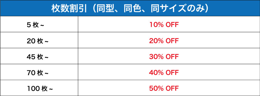 さらに大量発注の場合、別途お見積りさせていただきます。